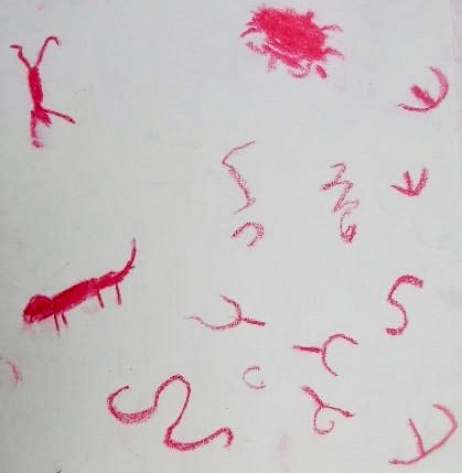Animaux dans la rivière – dessin sur papier: Anoami Yanomami