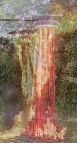 Fotomontaggio di performance di «Sculture di Fuoco».