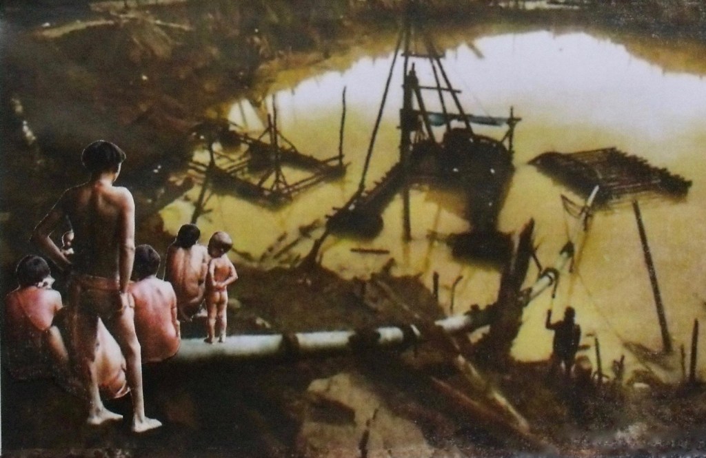 “Yanomami observant un site minier d’or sur leur territoire” – Photo des Yanomami, Alto Orinoco, Amazonas, Venezuela et montage photo: Barbara Crane Navarro