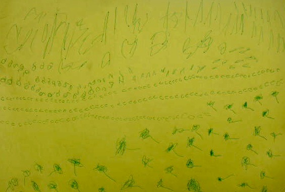 “A gold mining site with dead trees and polluted water” – drawing on paper: Namowë Yanomami