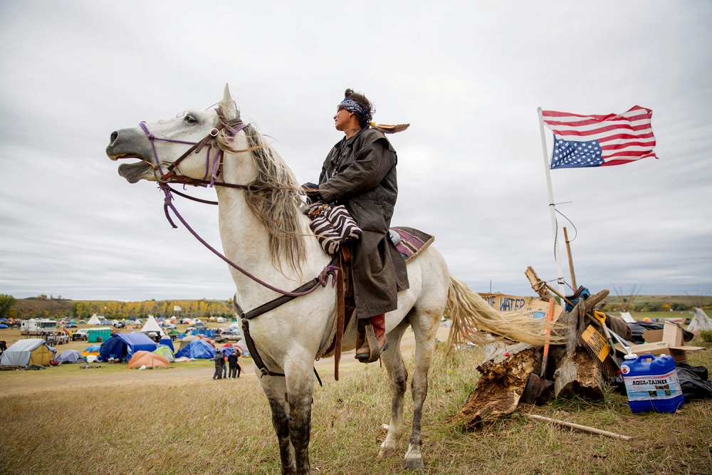 Milhares de pessoas, incluindo tribos nativas americanas de todos os Estados Unidos, se reuniram perto de Cannon Ball, Dakota do Norte para protestar contra a construção de um oleoduto perto da Reserva Standing Rock Sioux, o duto de acesso de Dakota (DAPL). A Tribo Standing Rock Sioux se opõe à DAPL desde o início da construção perto de sua reserva em Dakota do Norte em 2016 e argumenta que as operações de oleoduto colocam em risco o abastecimento de água onde ele cruza o rio Missouri.