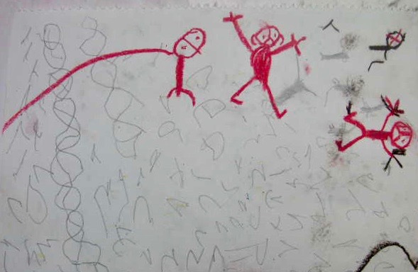 « The Yanomami shamans who fight the xawara epidemic see the disease’s image appear in the form of strips of scarlet fabric. The xawara epidemic is approaching and its smoke is glowing red! It is making the sky become ghost and is devouring all the human beings in its path! It must be driven away! »