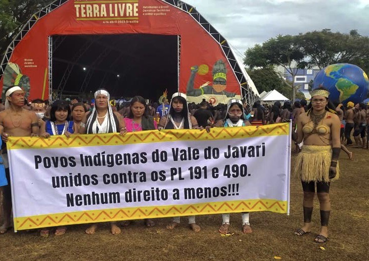 Em oposição ao PL191, projeto de lei no Congresso que permitiria a entrada de indústrias mineradoras e extrativistas em suas reservas, 8.000 pessoas representando mais de 200 nações indígenas de várias partes do país estão reunidas em Brasília para a mobilização do Acampamento Terra Livre e 10 dias de ação em prol dos direitos Indígenas garantidos constitucionalmente.