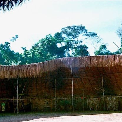 Yanomami shabono, la casa comunale, con tabacco essiccato, Alto Orinoco, Amazonas, Venezuela – foto: Barbara Crane Navarro