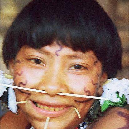 Donna Yanomami con pittura per il viso genipap e un batuffolo di tabacco sulla guancia, Alto Orinoco, Amazonas, Venezuela – foto: Barbara Crane Navarro
