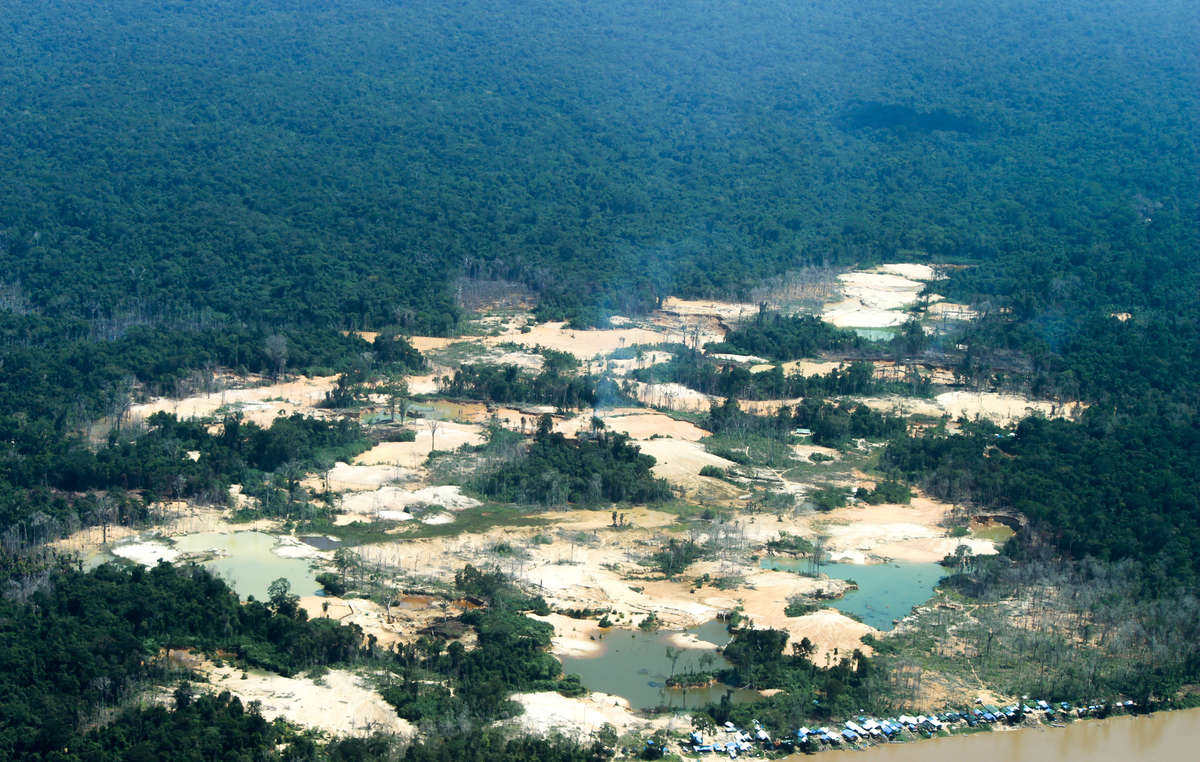 A realidade: árvores arrancadas e água contaminada com mercúrio para mineração de ouro na região amazônica