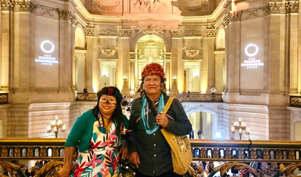 Alessandra Korap Munduruku a reçu le Goldman Award lors de la cérémonie à San Francisco, en Californie : ” Le prix reconnaît notre lutte et dit au monde ” Nous sommes ici “. Les entreprises multinationales ne peuvent pas entrer sans consulter les peuples autochtones !
