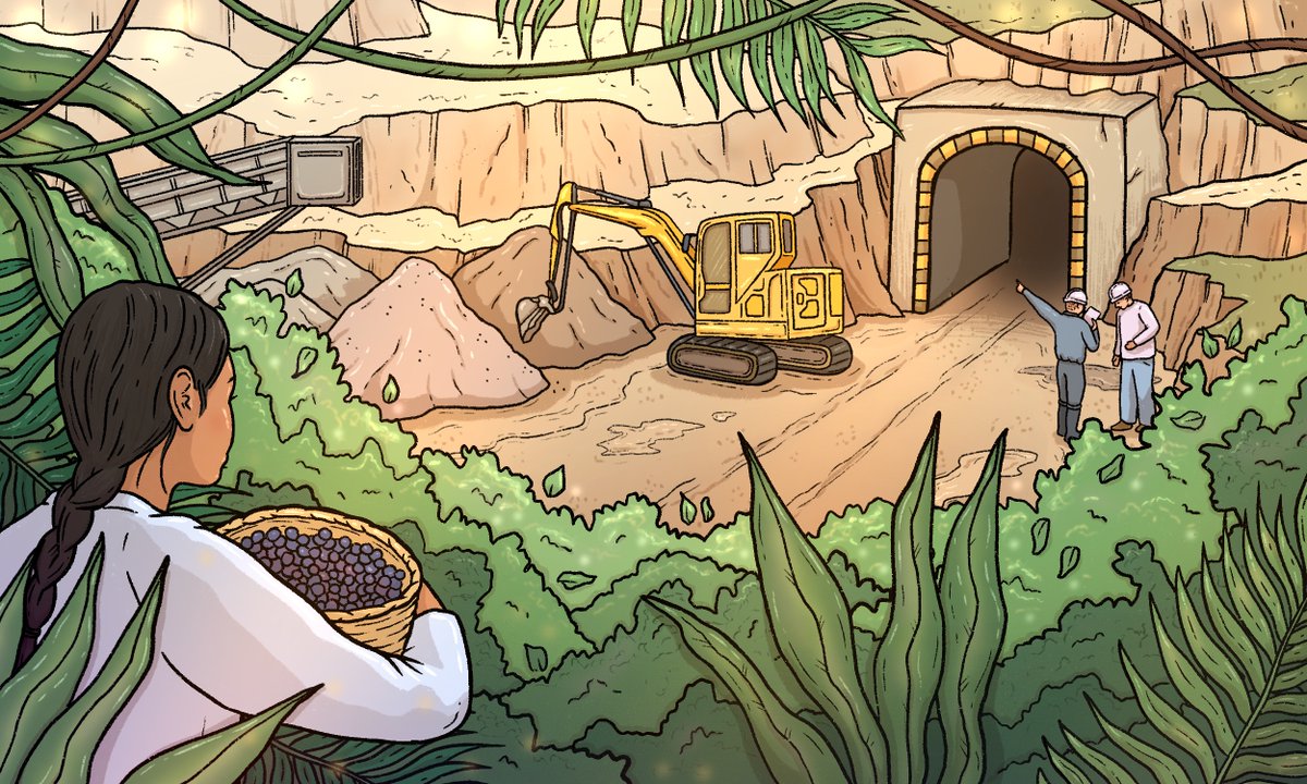 Il sito minerario di Coringa di Serabi Gold – illustrazione di Nadia Akingbule per Unearthed