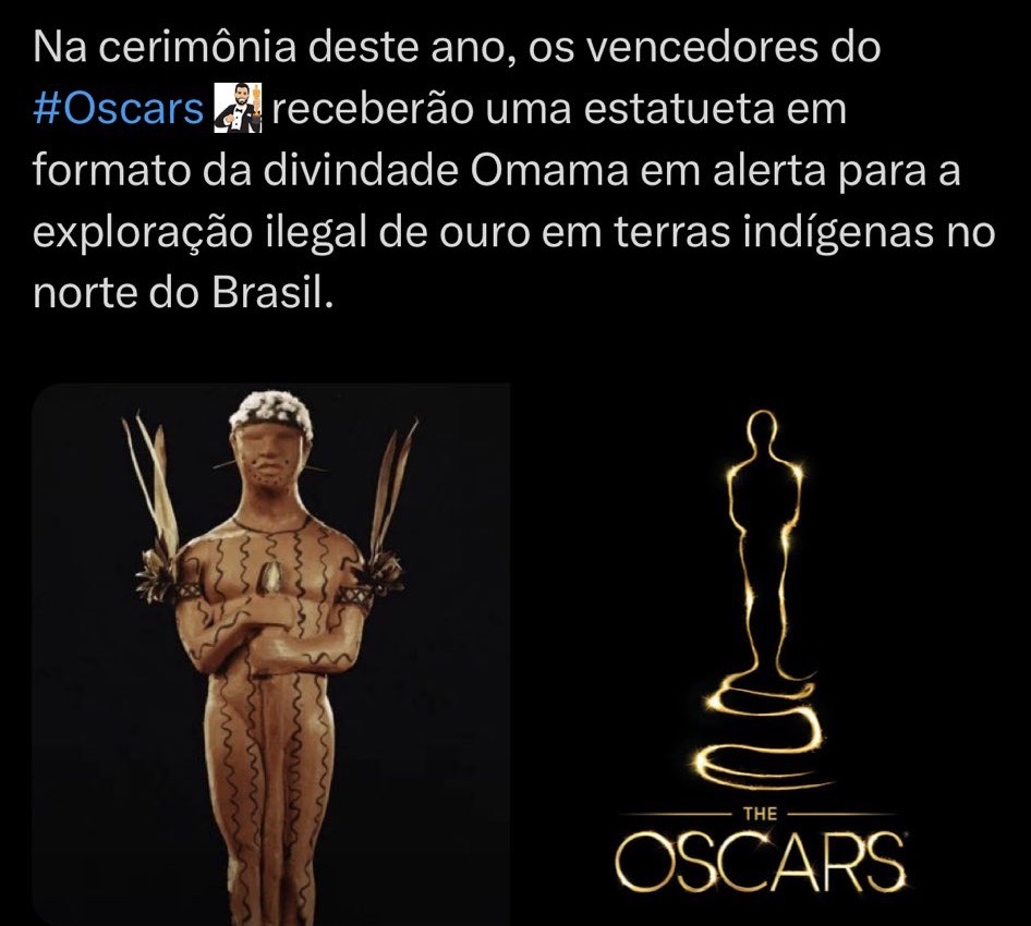 Vinte indicados nas principais categorias do Oscar receberam uma estatueta de madeira da divindade Yanomami Omama como parte de uma campanha contra a mineração ilegal de ouro.