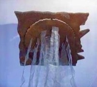 In « Totemic Sculptures – Grace Teshima Gallery Exhibit » textured paintings plus two totemic sculptures, one in canvas and one in metal, alternate with scenes of Yanomami life in the Amazon rainforest on a small screen.