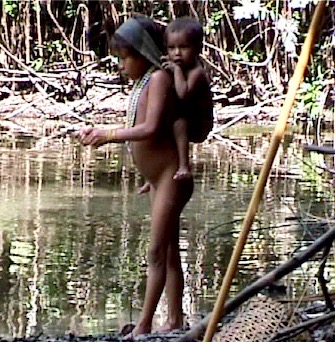 Yanomami mother and baby with Achiote face paint, Amazonas, Venezuela(still from film)