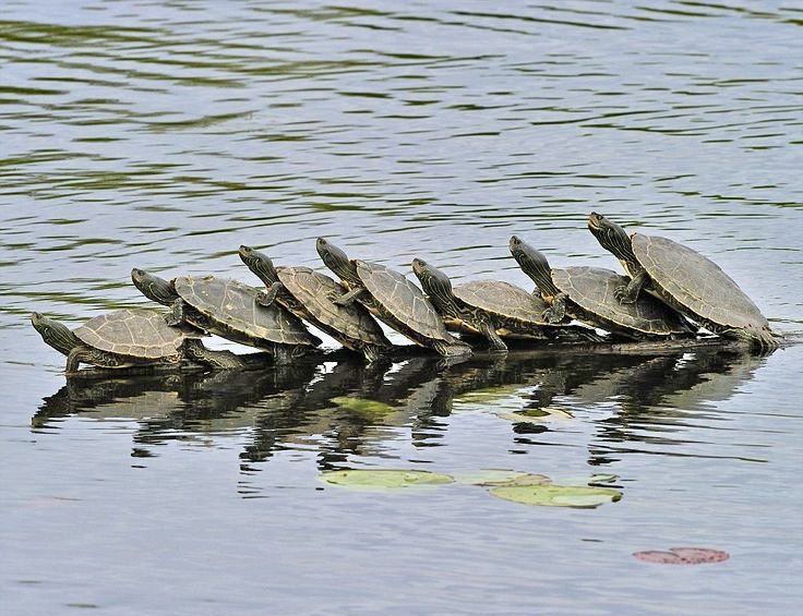 Tortues de rivière au soleil sur une bûche en Amazonie !